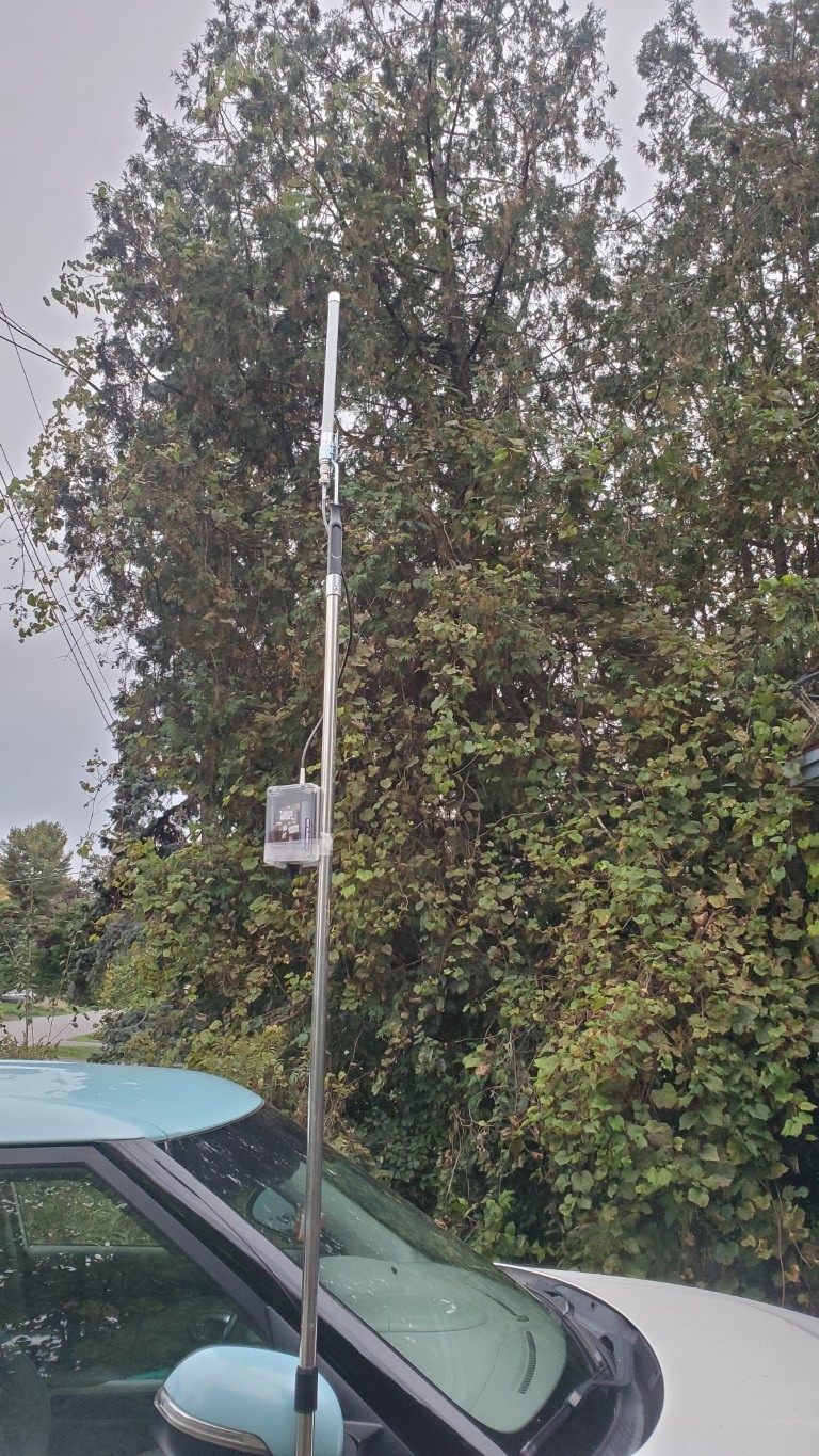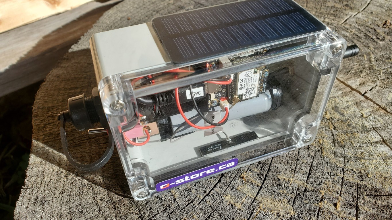 It has an internal Li-Ion battery and a solar panel which will allow it to run for many days. It comes with a 5dBi antenna